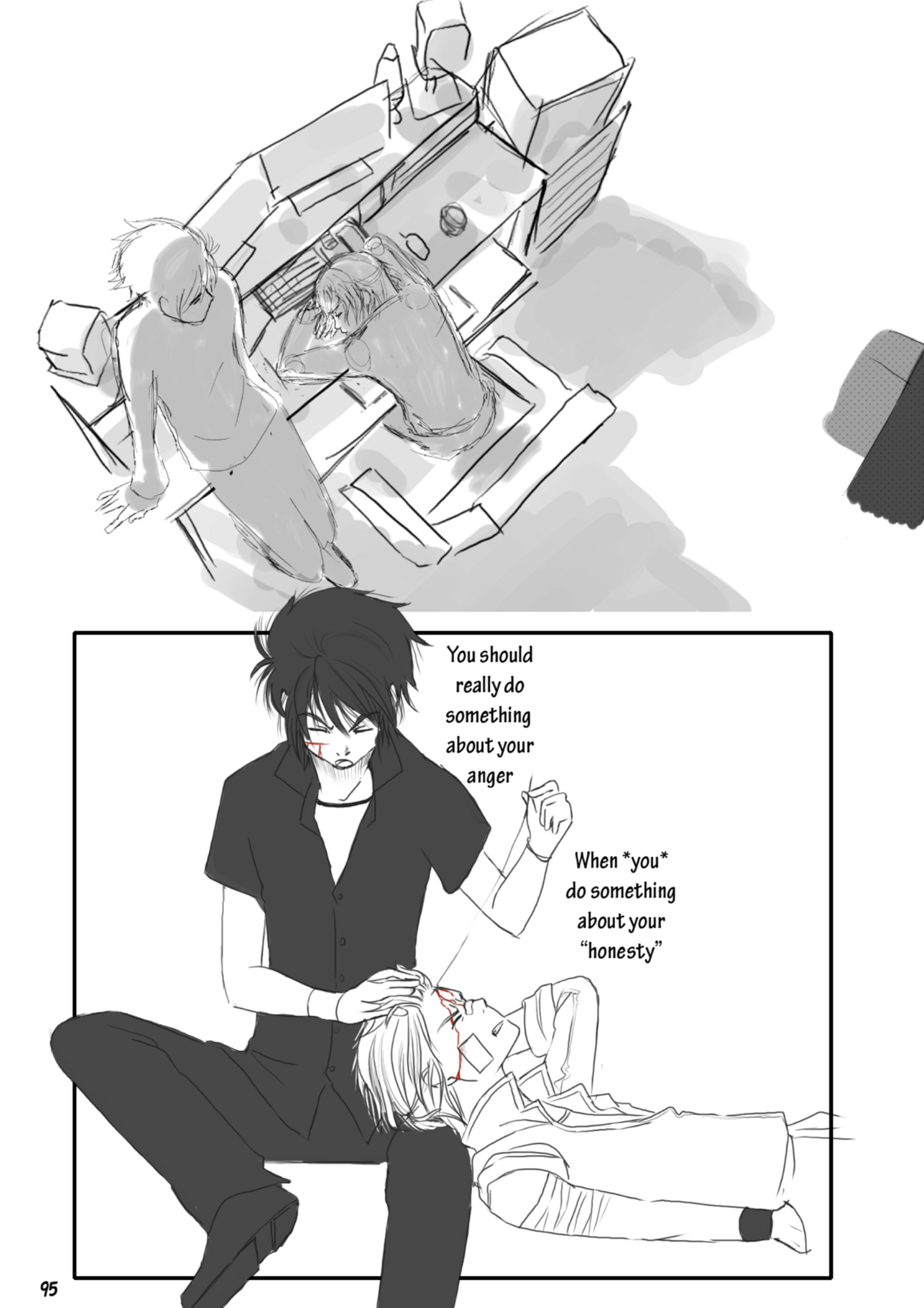 It's safe to say you're here knowing the themes of the story, but I have to add a warning that there is heavy depiction of blood and self-harm. This was the exploring phase of the story creation; I was getting to know the characters, the themes and the way to tell a story.